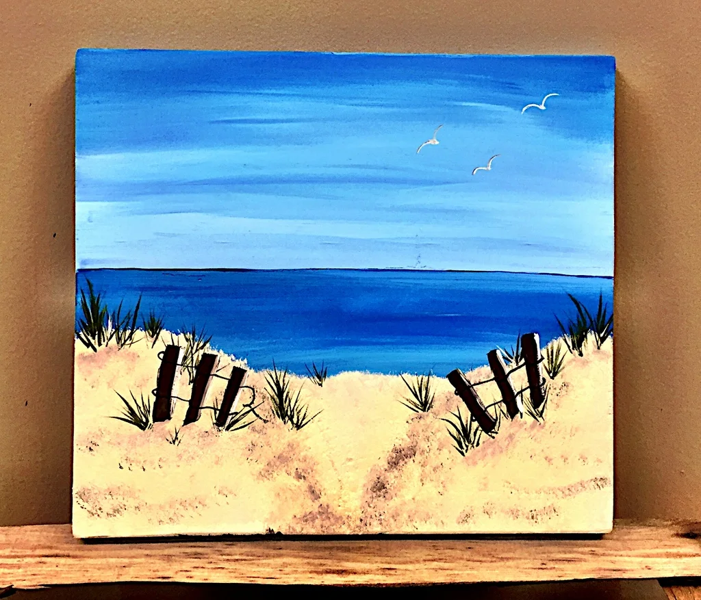 Take your shoes off and walk on along this sandy beachfront. Join us and learn how to blend a sky of wispy clouds, water ready for a swim, and warm sand dunes.